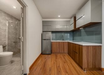 Deluxe Studio Room sở hữu không gian rộng với khu bếp và bàn ăn riêng, phù hợp cho kỳ nghỉ dài ngày hoặc khách thích tự nấu nướng. Cửa sổ lớn hướng city view, một số phòng ở tầng cao có thể nhìn ra biển vịnh Đà Nẵng hoặc cầu Thuận Phước, mang đến trải nghiệm vừa tiện nghi vừa thư thái.