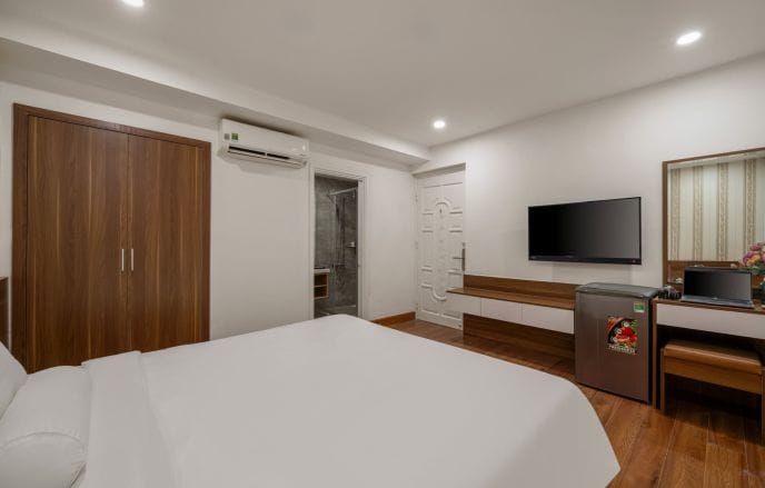 Dù không có cửa sổ, phòng vẫn mang lại cảm giác thoải mái nhờ không gian gọn gàng, sạch sẽ, được trang bị đầy đủ tiện nghi hiện đại.