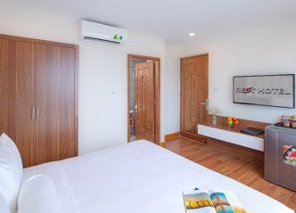 Superior Double Room có cửa sổ thoáng mát hướng ra thành phố, một số phòng trên cao còn nhìn thấy sông Hàn từ xa. Diện tích hợp lý cho 2 khách, trang bị đầy đủ tiện nghi hiện đại như giường đôi êm ái, điều hòa, tivi màn hình phẳng, tủ lạnh mini và phòng tắm riêng. Giá chỉ từ 600k/đêm, là lựa chọn cân bằng giữa chi phí và trải nghiệm view đẹp.